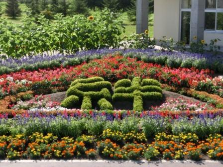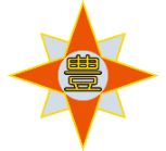 豊成小学校を中心に、八方に発展していく勢いを表し、白色は平和を愛し、心が豊かなことを表し、赤色はどこまでも正義をつらぬく強い情熱を示しています。